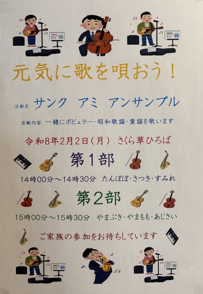 来る2月2日(月)、ボランティア団体『サンク・アミ・アンサンブル』様による