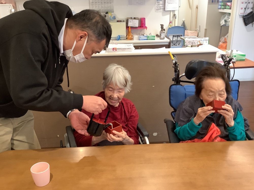 皆さんで「今年一年健康で長生きできますように」と乾杯し、新年のスタートをしました。