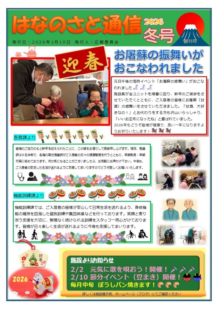 この度1月10日付にて、装いも新たに季刊広報誌「はなのさと通信」を創刊いたしました。