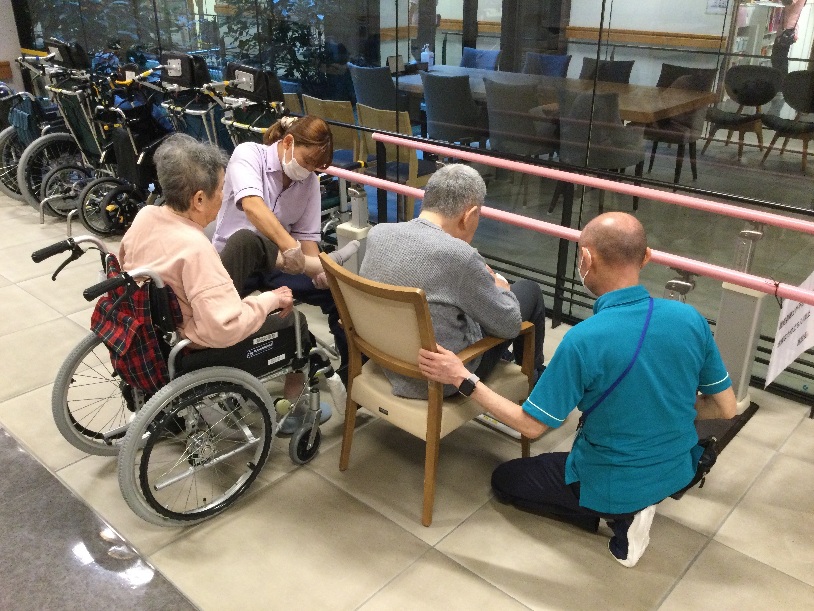 ご利用者様が「よいしょ!」とゆっくりと足踏み運動がスタートしましたが、