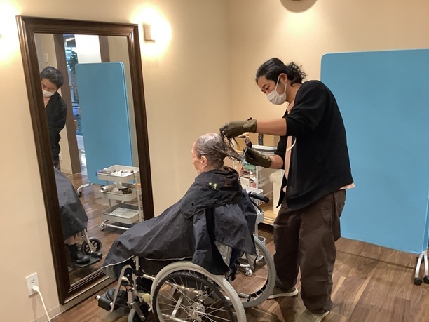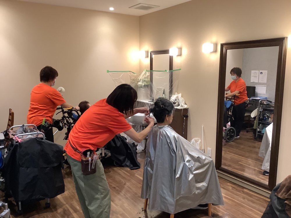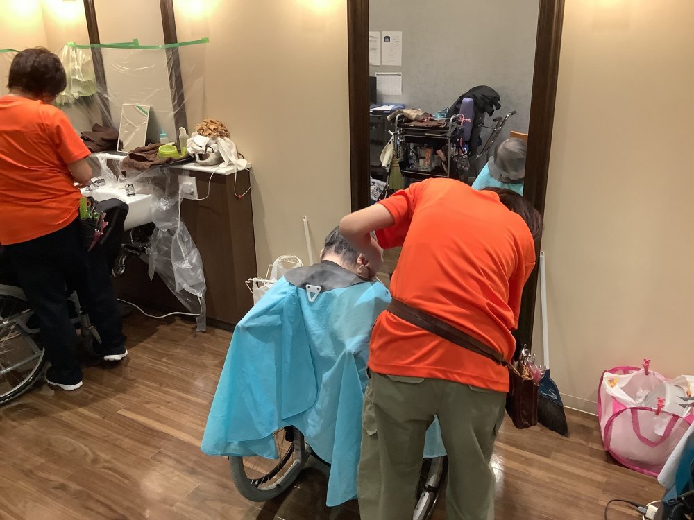 当施設では毎月、外部の訪問理美容✂スタッフにお越しいただき、