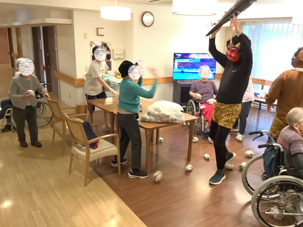 大谷翔平⚾ばりの剛速球で豆を投げるご入居者がいて、