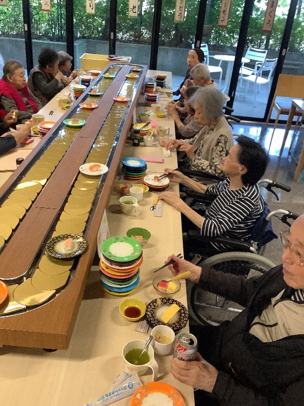 皆さん、思い思いでお寿司を食べ、楽しんでいます。