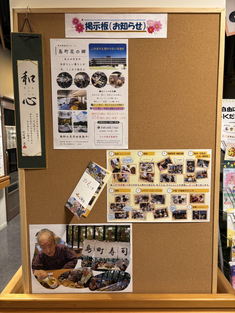 従来の向かって左側(事務所受付側)の掲示板は主に施設からの「お知らせ」を、