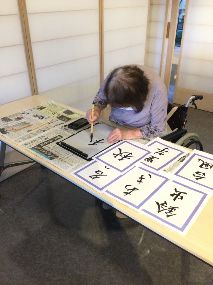 久しぶりの書道に「昔を思い出すね」と笑顔を見せてくださいました。