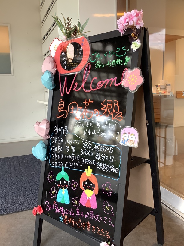 今月はお雛様が描かれた可愛いらしいウェルカムボードが、
