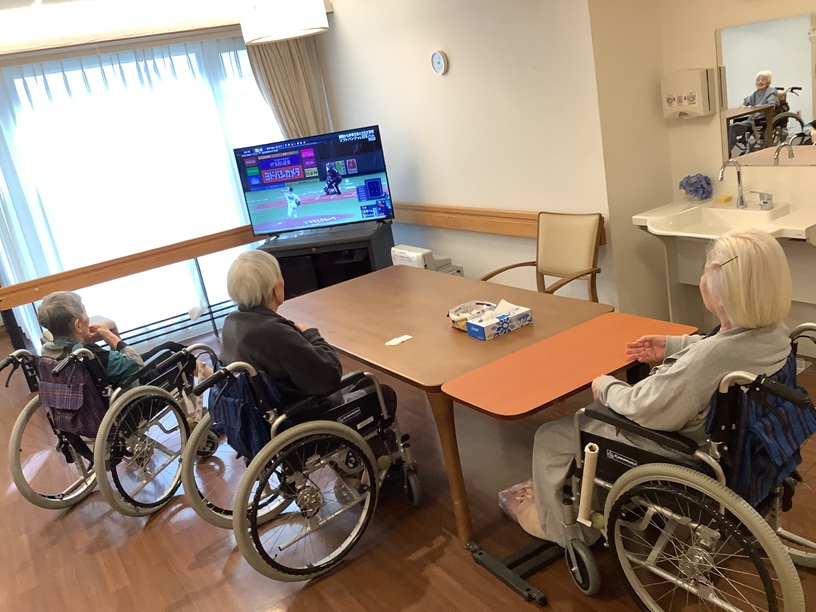 特に男性入居者は目👀を大きく開け熱心🔥に観戦する姿が見られました。