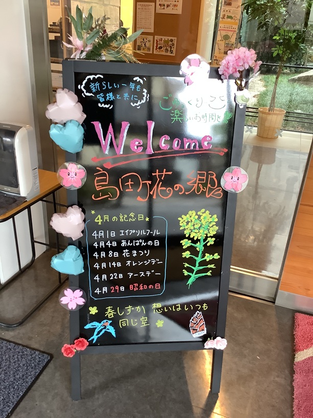 今月はミモザが書かれたウェルカムボードを設置しています。